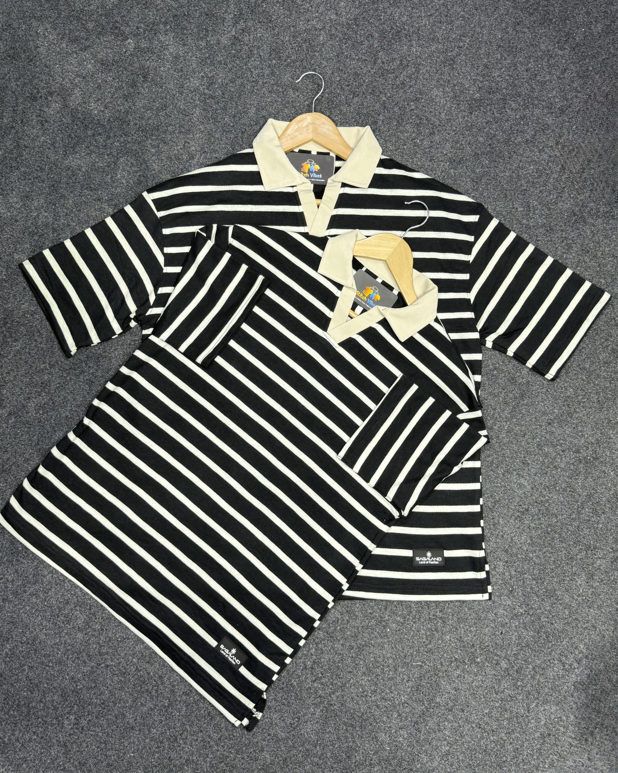 Old Money Polo T-shirt (Black-SlimWhite Striped)